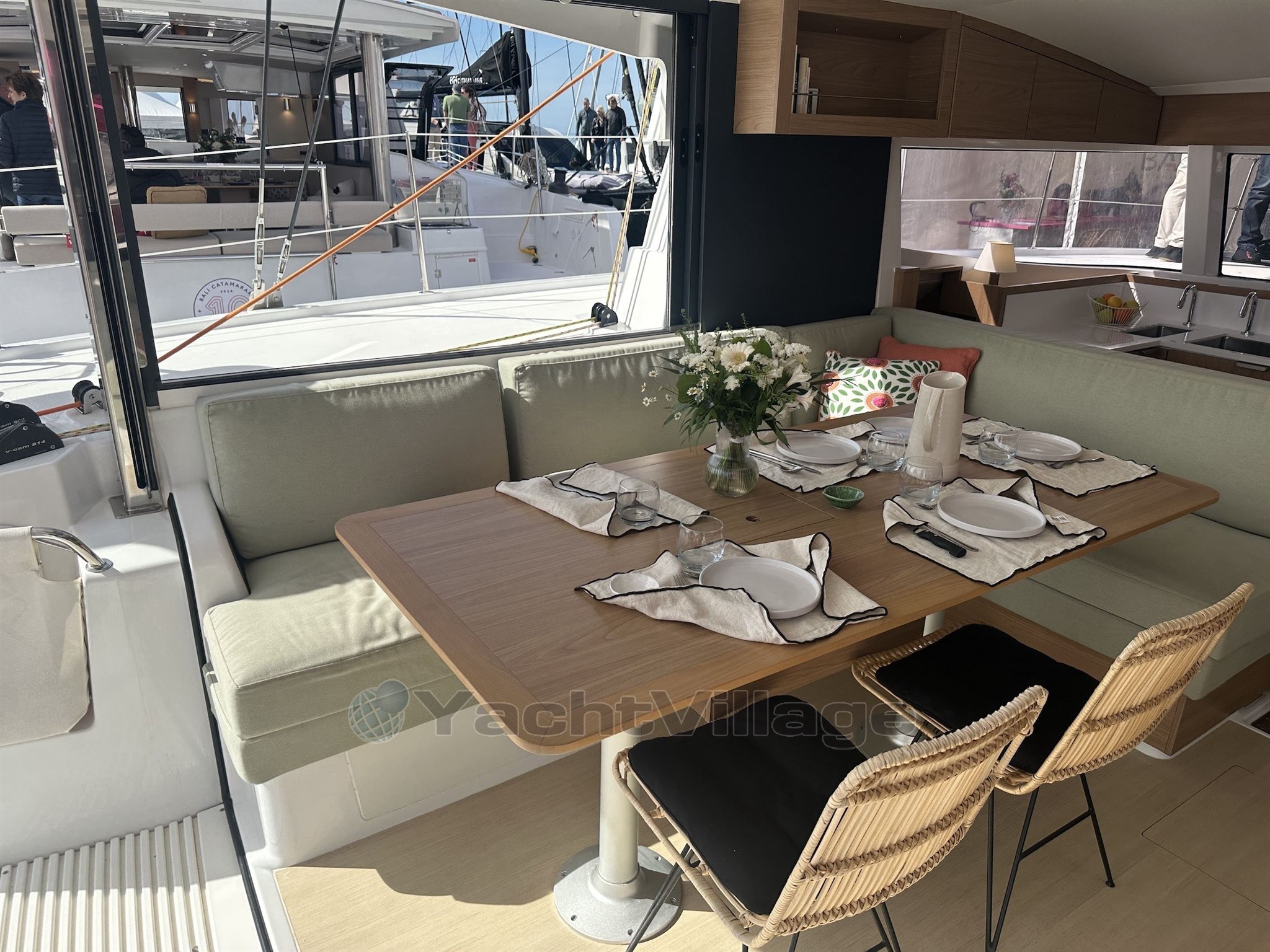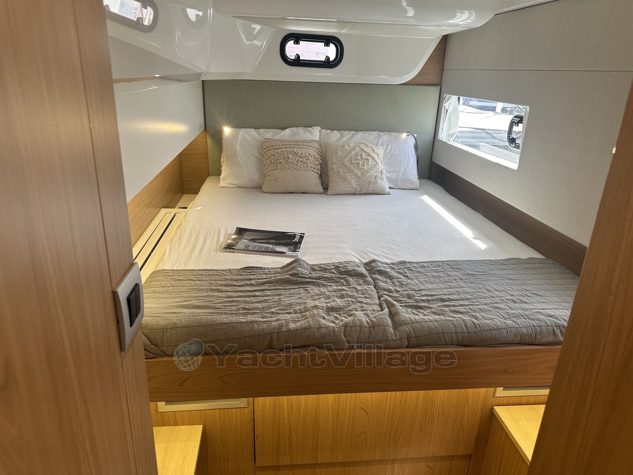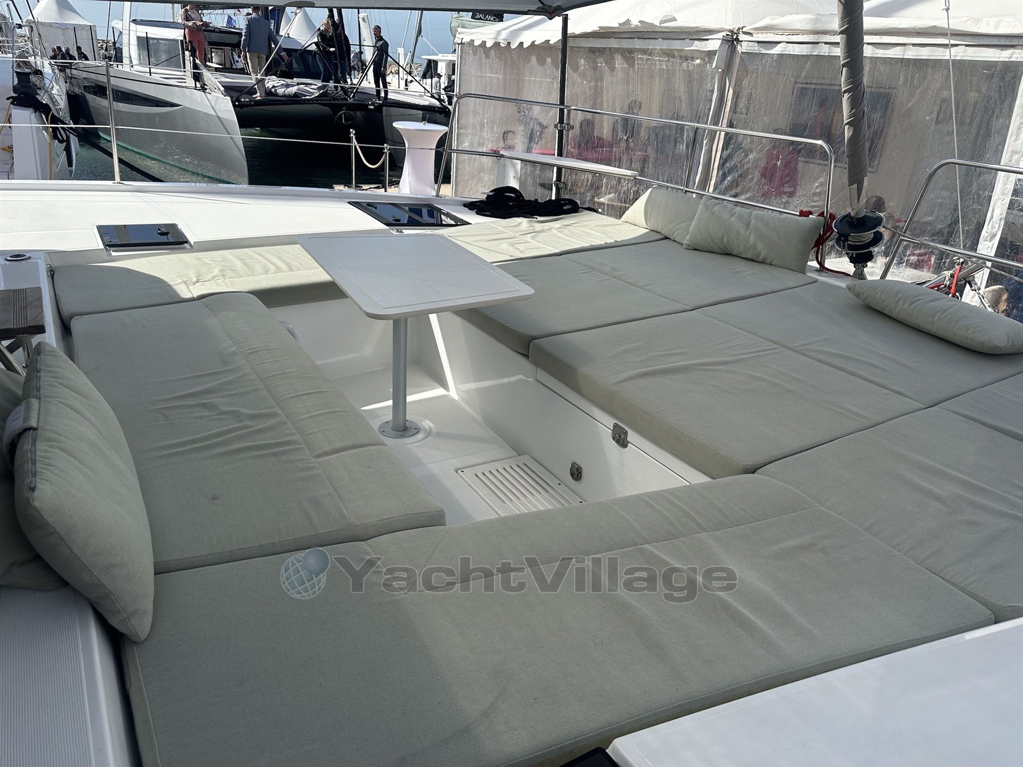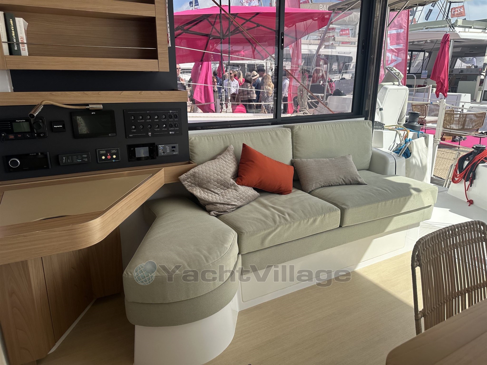 Excellence Pack, Elegance Pack, Code 0 with fittings, overlapping genoa, solar panel, water circulation heating, seawater pump, electric fresh water WC, forward table + sunbathing upholstery, gas plancha, Fusion sound system, electronic pack with autopilot & remote control, offshore armament, dinghy and outboard engine.