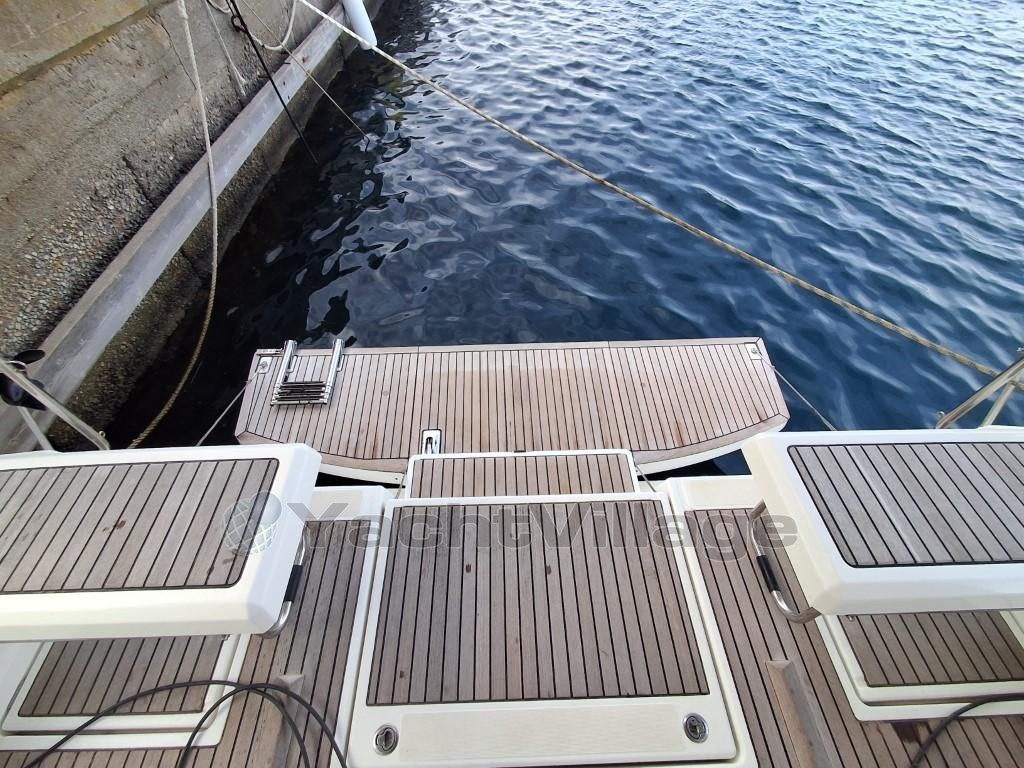 Providing excellent protection under sail, the transom closing the aft of the yacht opens out to provide a huge swim platform. This affords direct access to the sea, while preserving space and comfort in the cockpit.