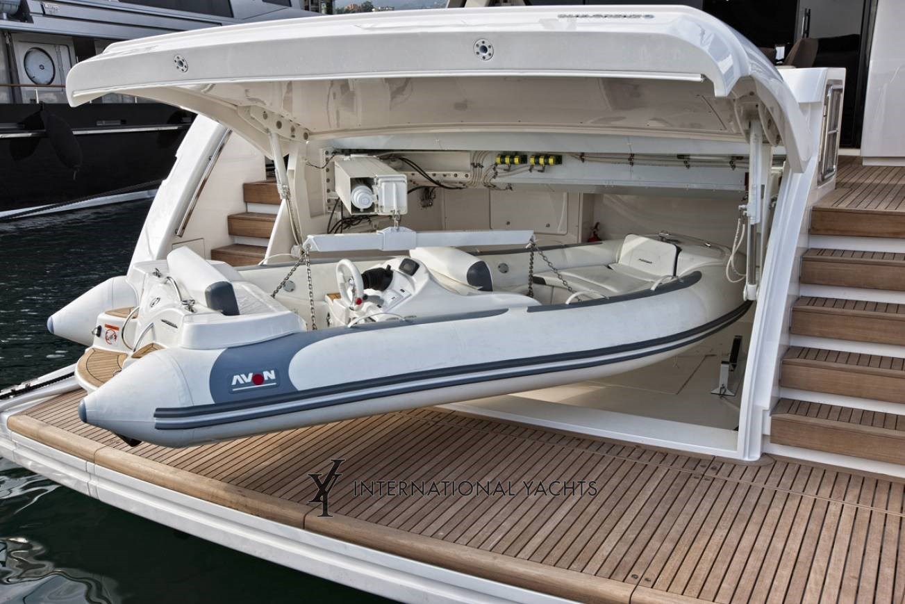 OTHER EQUIPMENT Tender Jet Ski (new) Teppan Yaky garage on Flybridge Ladder bathroom plumbing Galley equipped with ceramic hob, oven, microwave, fridgefreezer, dishwasher Wine Cooler Heated decking in master bathroom, VIP and guest cabins Refrigerator and ice maker in saloon Refrigerator and ice maker in wetbar Flybridge Interior in satin oak Inverter for fridge and TV Separate washing machine and dryer in crew