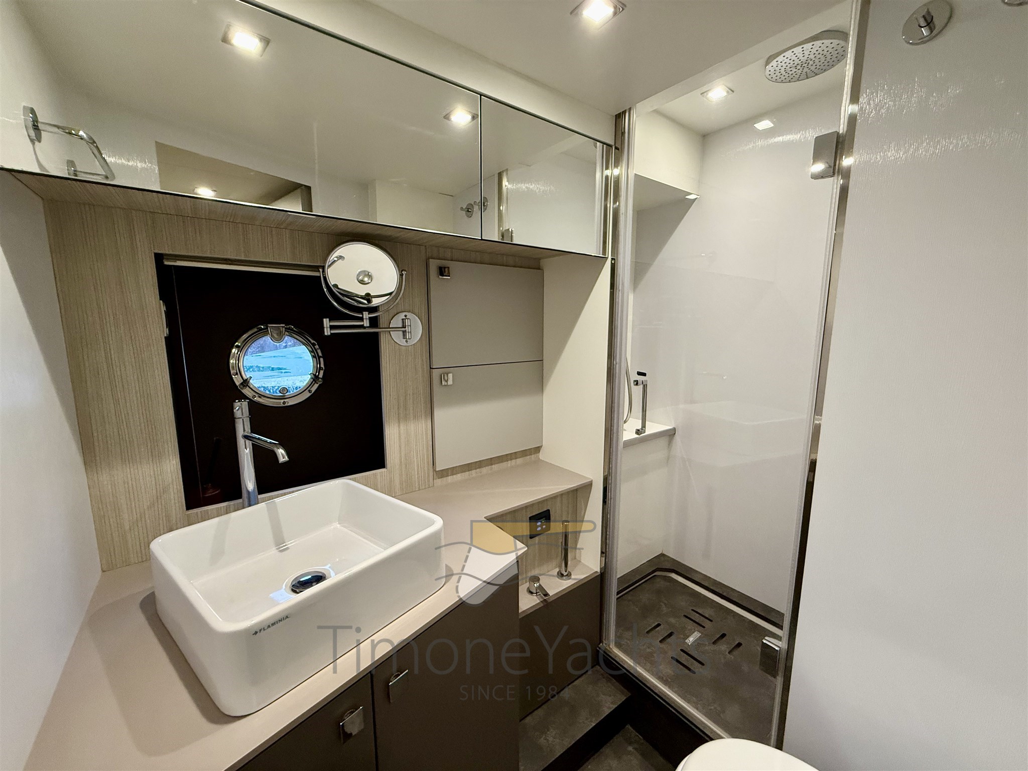 Mystique is 2020 Cranchi 60 ST is sole Owner from new, Privately owned and EU vat paid. Fully loaded with Seakeeper. 20.5Kw generator, max possible navigation electronics, bow deck bimini, sat tv, crew cab with AC and all other possible systems. Convenient tender garage, plus up/down platform, the air conditioned cockpit is a work of art for the size, and the inside goes good too. Reveals great master amiship, great vip up front and a convenient 3rd guet cabin with L shape bunks. Double galley, down in lower deck + up at cockpit level.