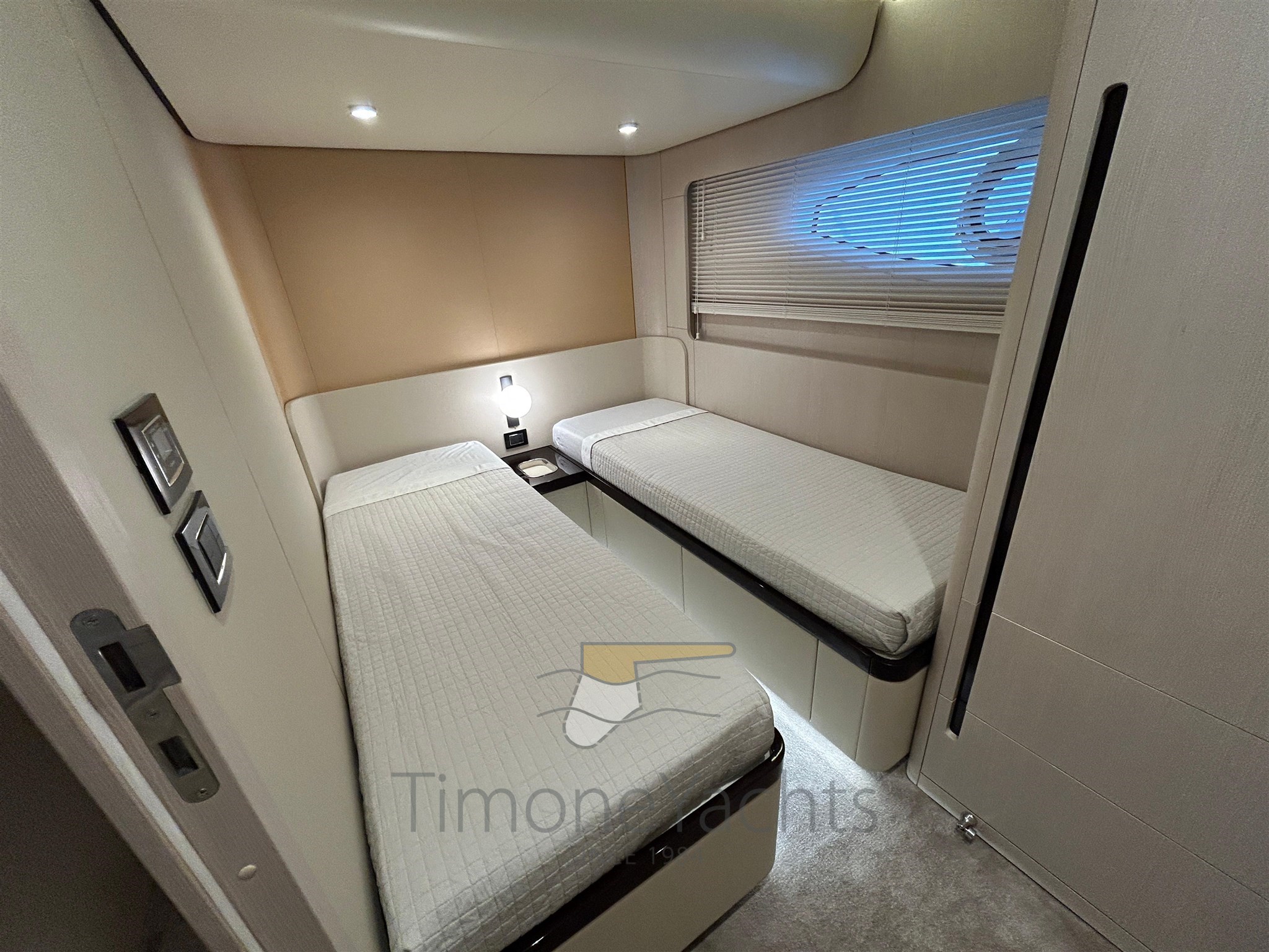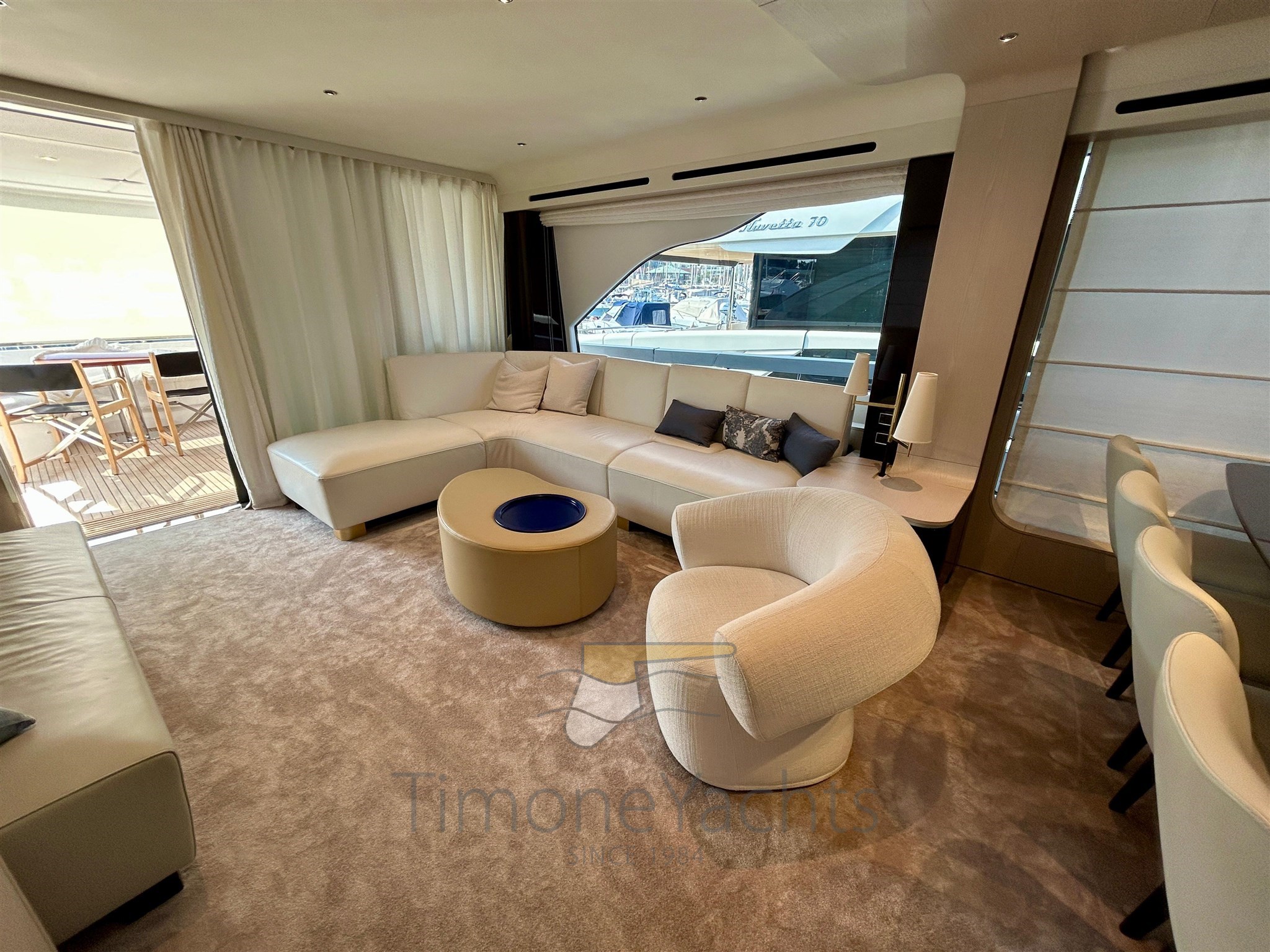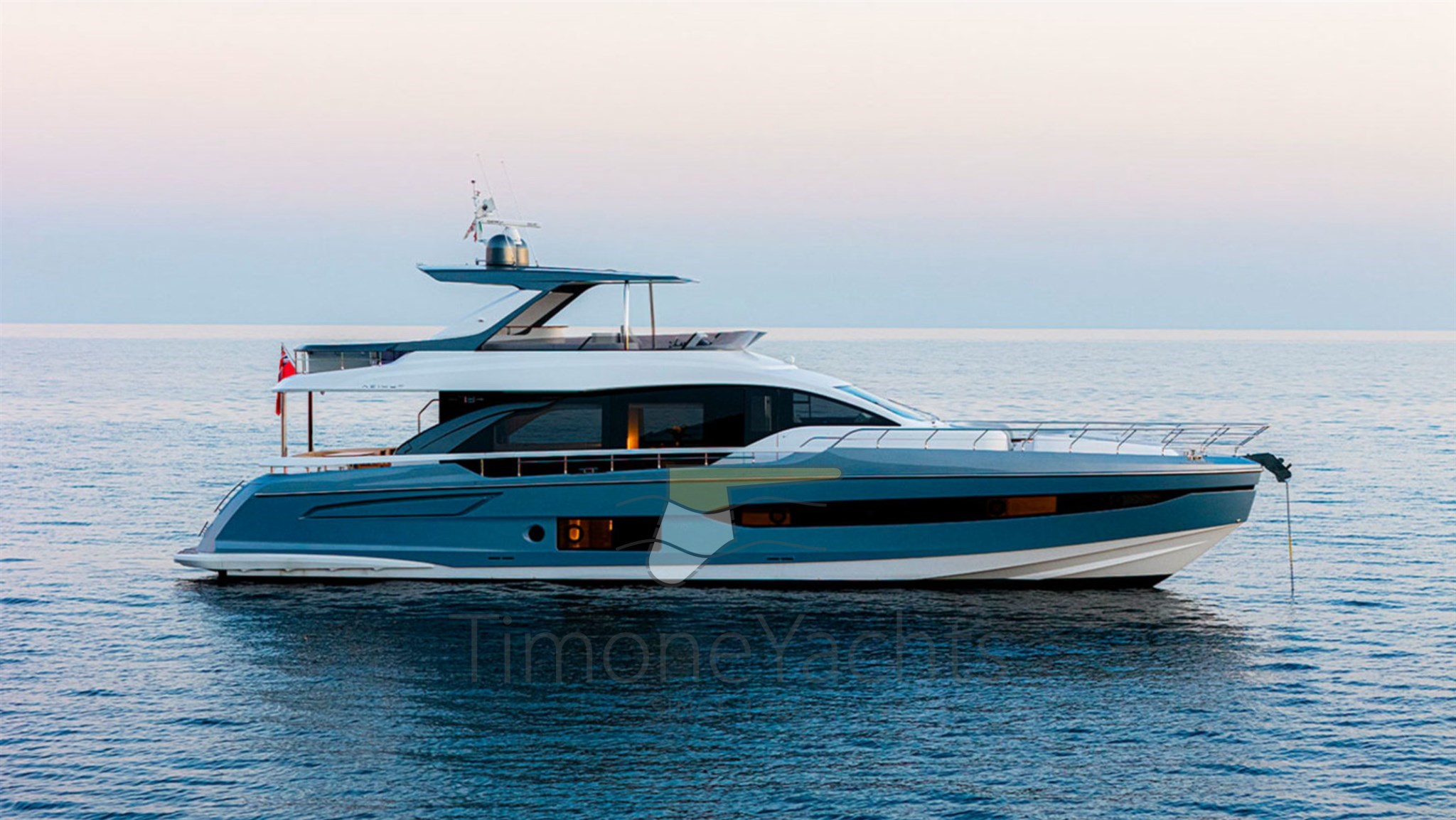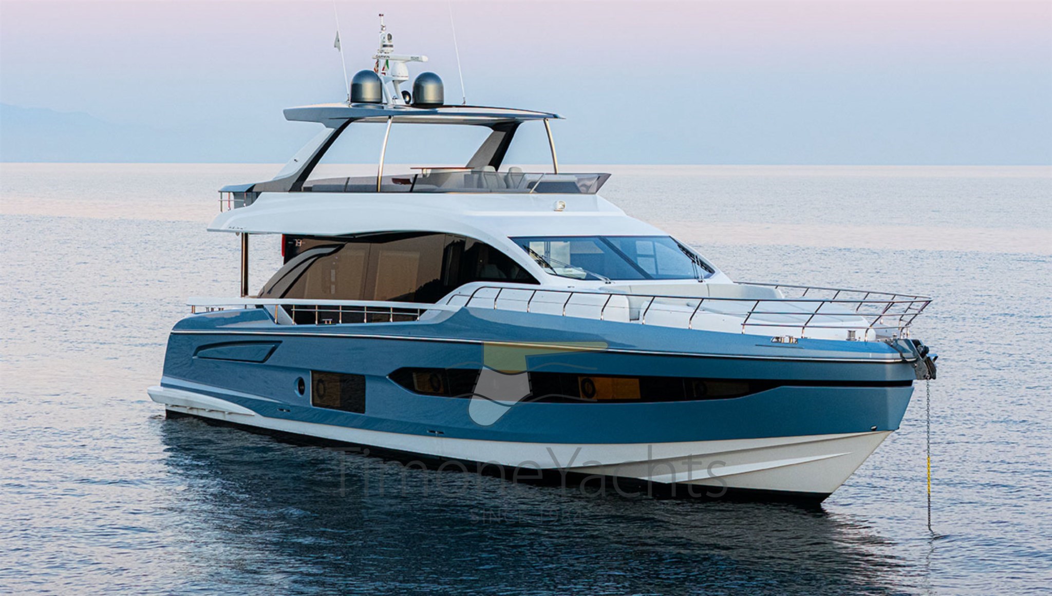 Launched by Azimut Yachts in 2021, Time Out is a classically styled flybridge yacht with advanced specifications: Seakeeper NG 26 stabilizer, powered by 3 Volvo engines of 1000 hp each, 180 l/h watermaker, Etna Gray hard top, Ischia Gray hull paintwork, teak finishes in the exterior areas, Oceanled underwater lights, Raymarine Gold navigation package, and many other useful options and solutions.