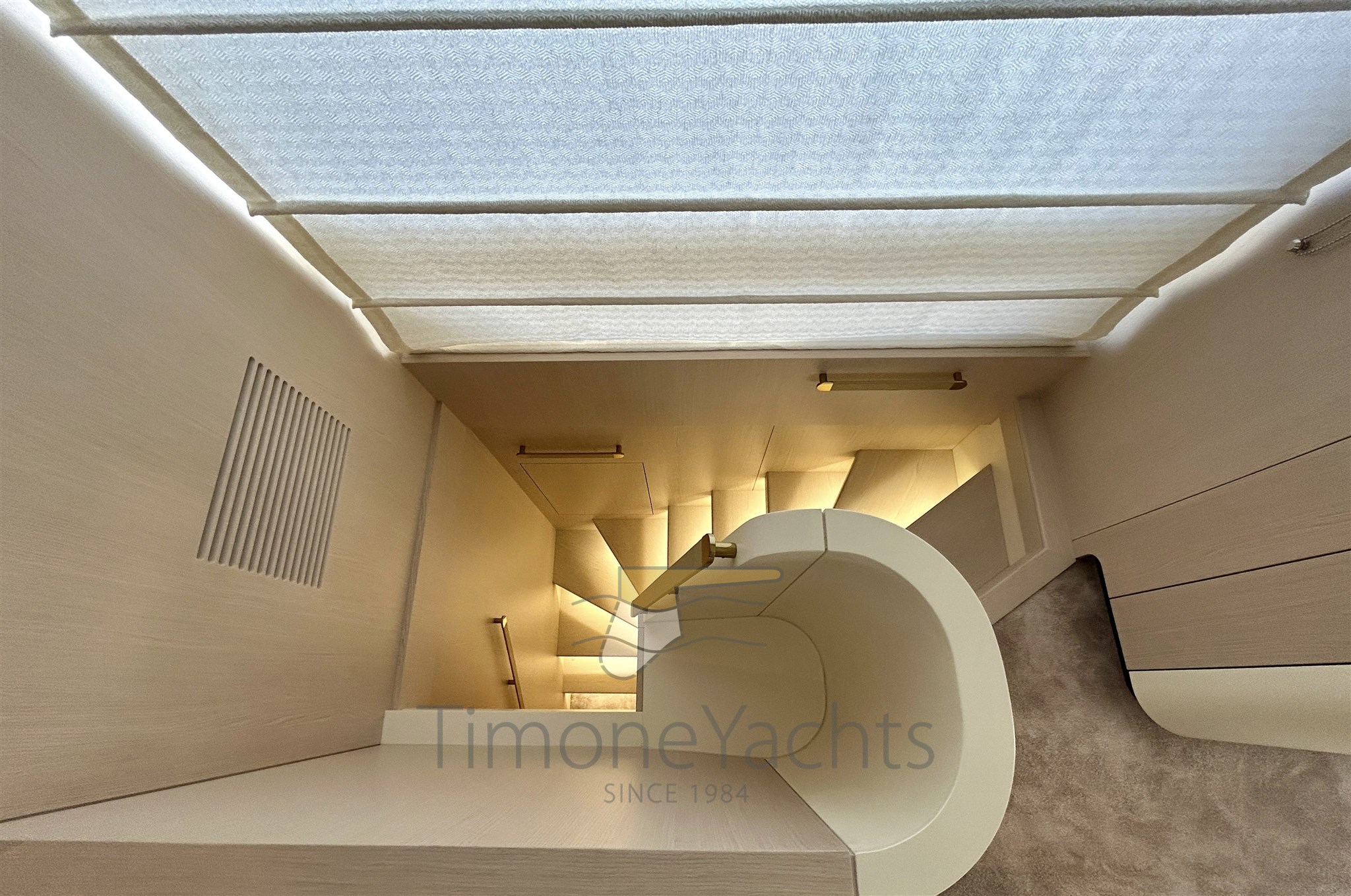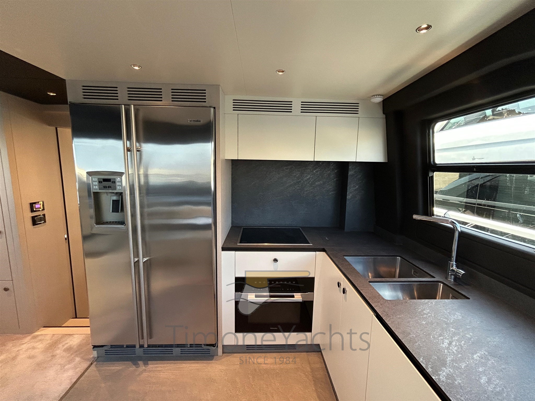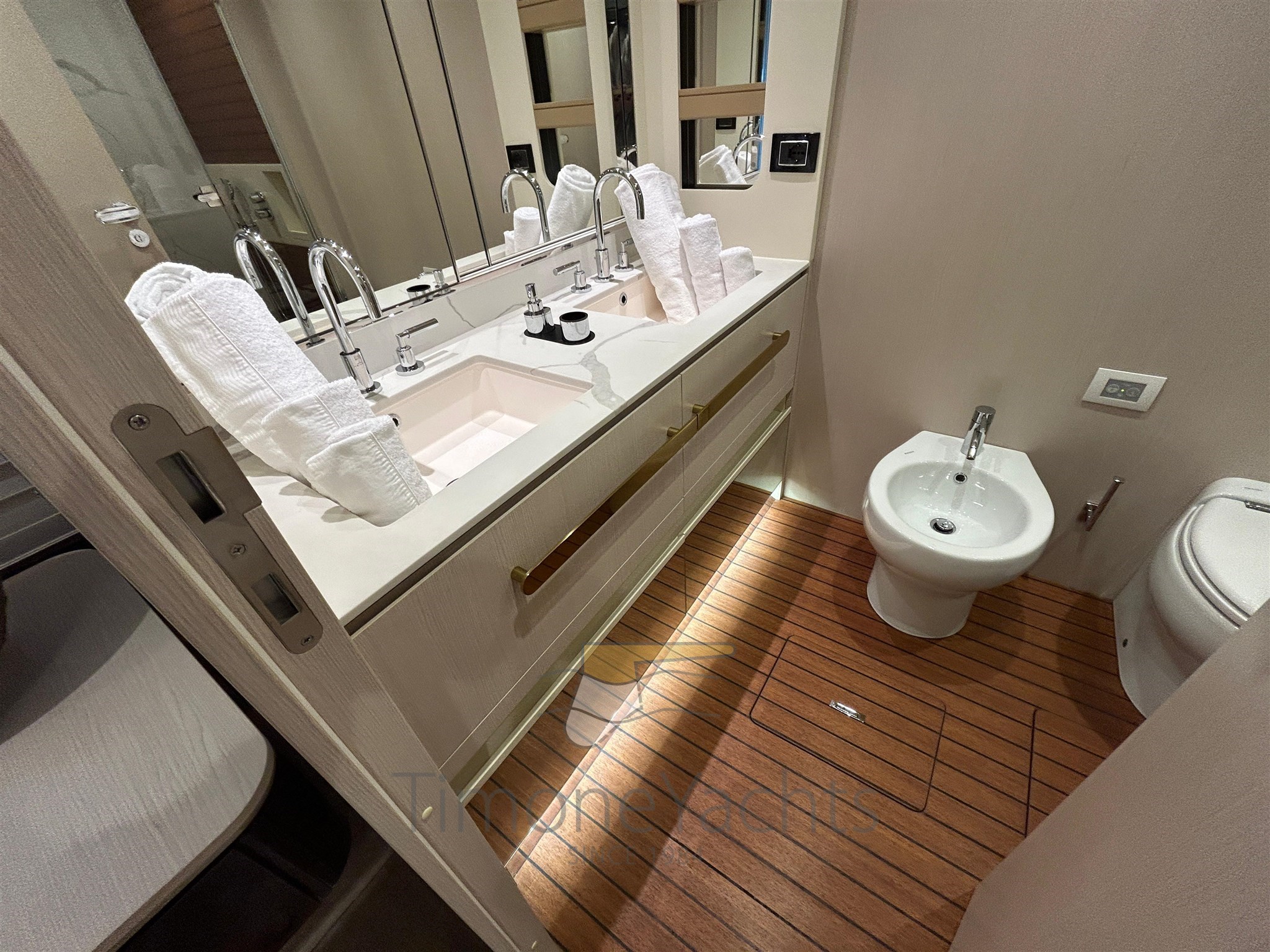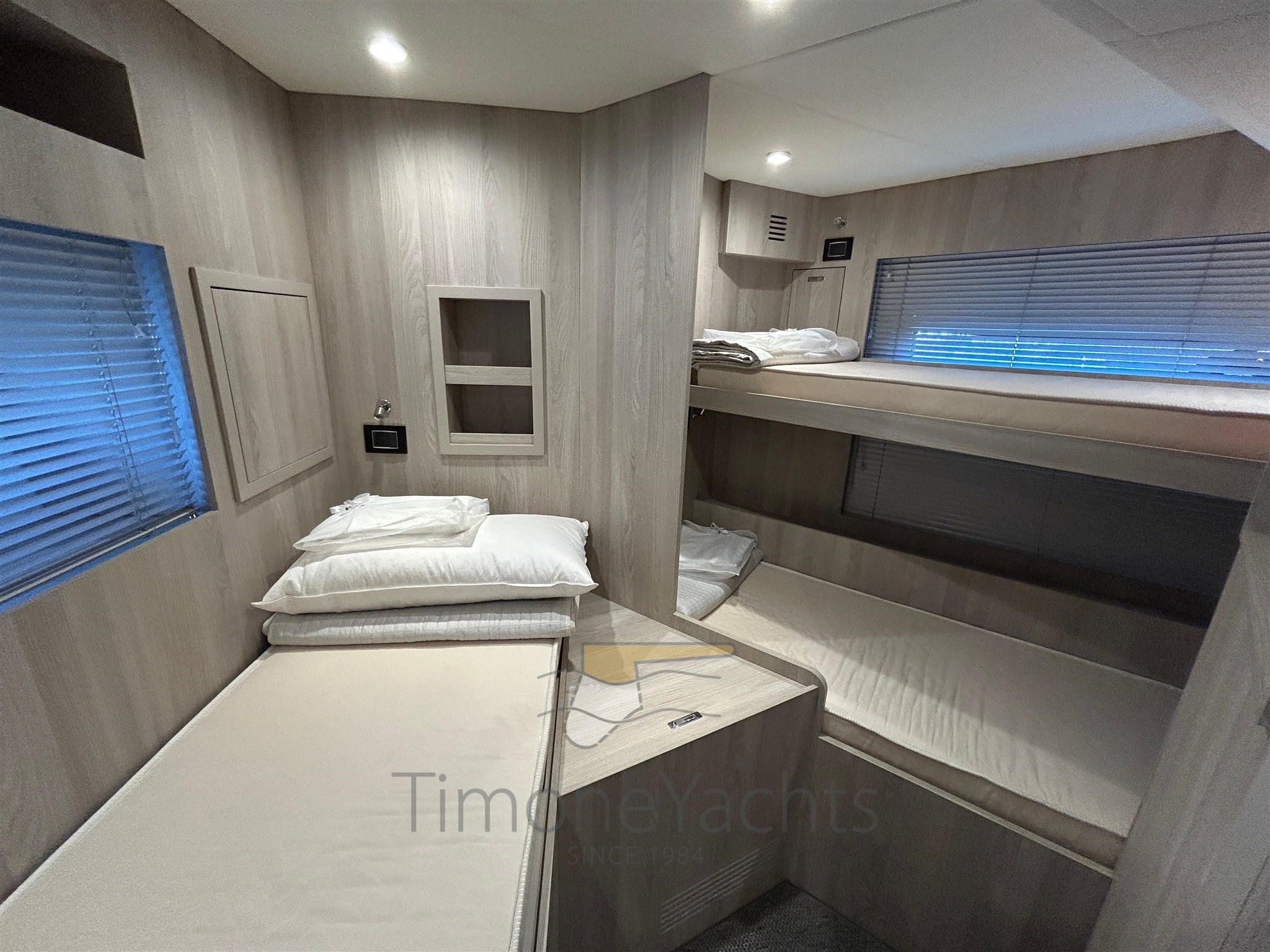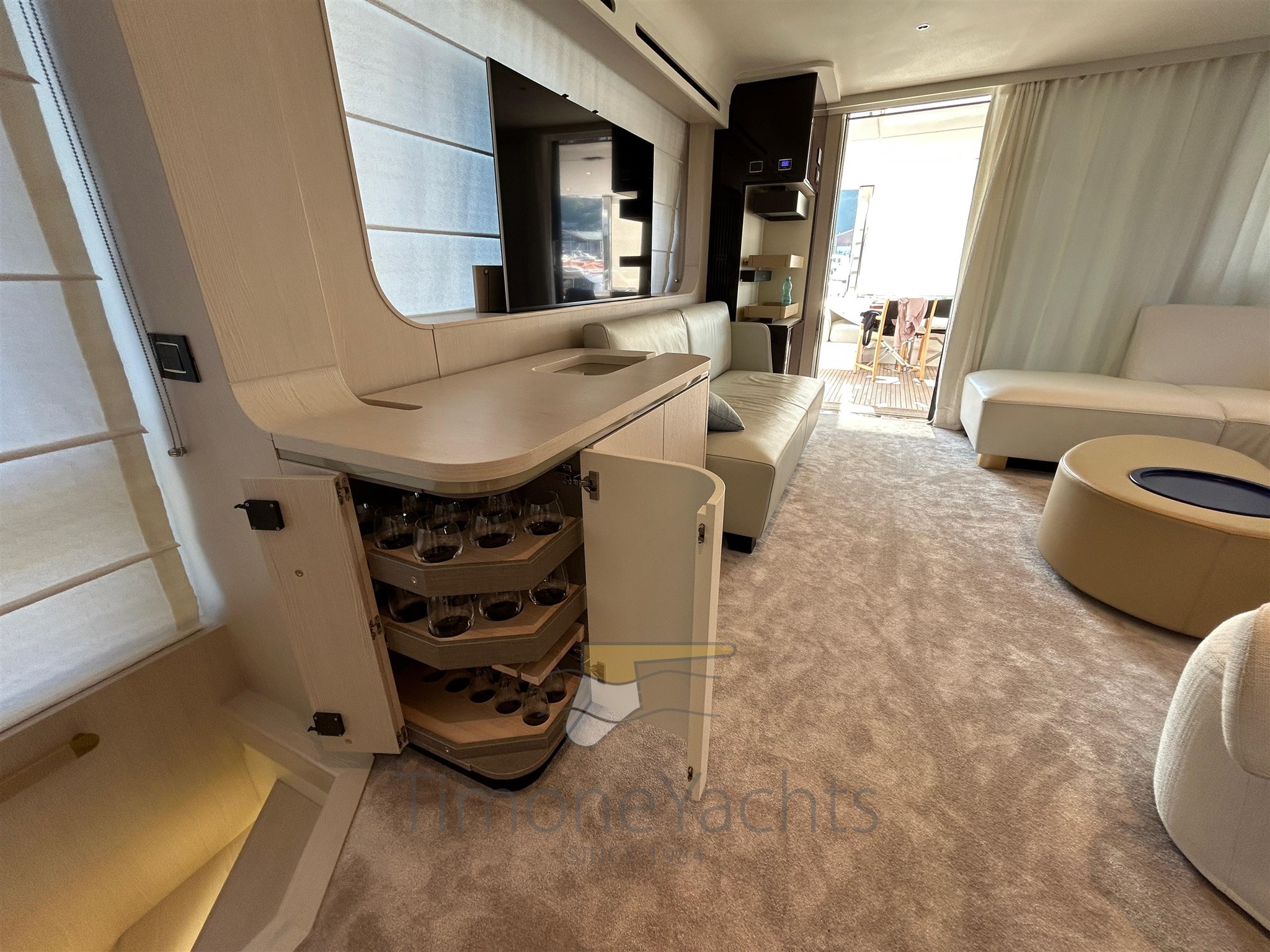 Launched by Azimut Yachts in 2021, Time Out is a classically styled flybridge yacht with advanced specifications: Seakeeper NG 26 stabilizer, powered by 3 Volvo engines of 1000 hp each, 180 l/h watermaker, Etna Gray hard top, Ischia Gray hull paintwork, teak finishes in the exterior areas, Oceanled underwater lights, Raymarine Gold navigation package, and many other useful options and solutions.