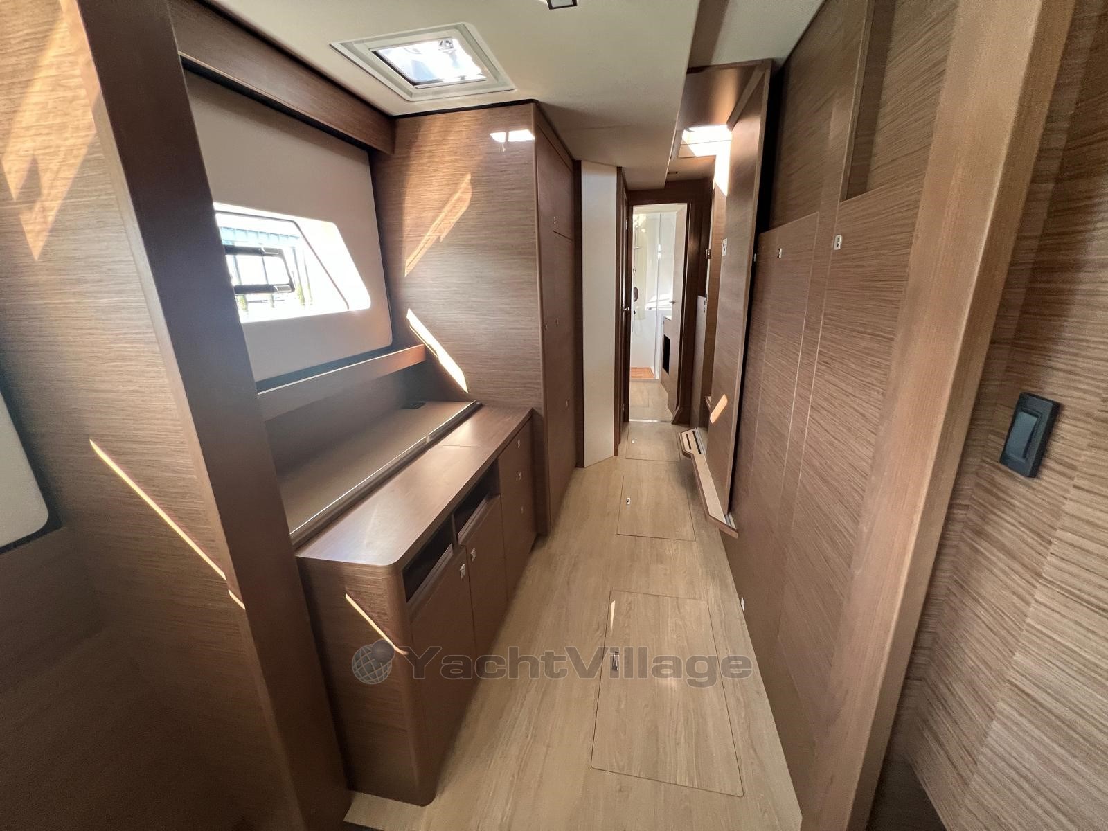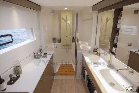 The boat is delivered ready to sail, 3 cabins, 1 owner suite at port side and 2 double guest bed rooms in the starboard hull
