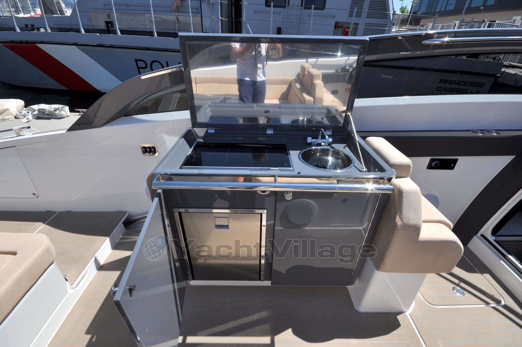 Outside, this luxury day cruiser offers a spacious and elegant deck layout, perfect for enjoying the finest days at sea. Inside, you will find generous volumes and refined finishes, delivering superior comfort for both day trips and extended cruising.