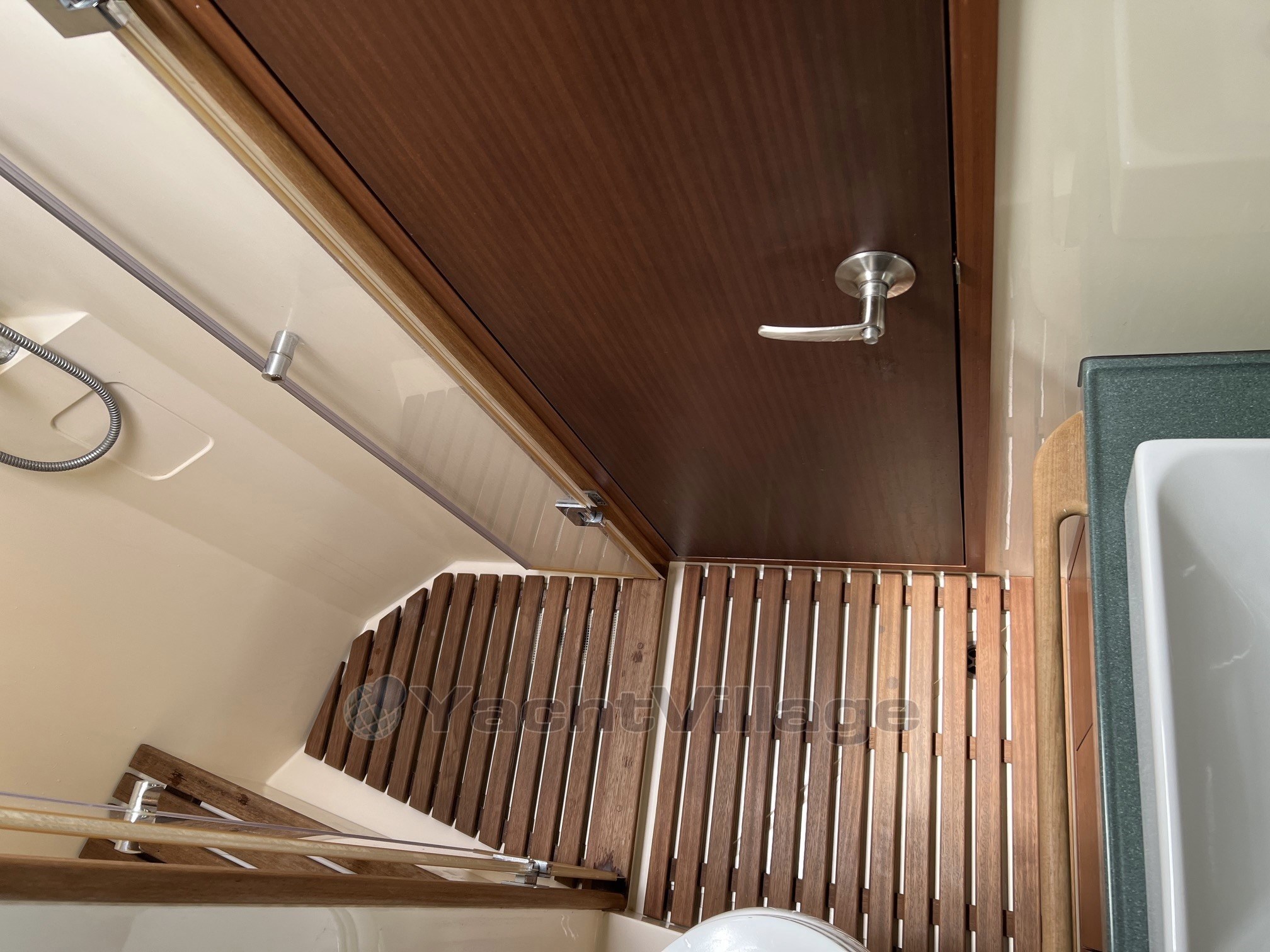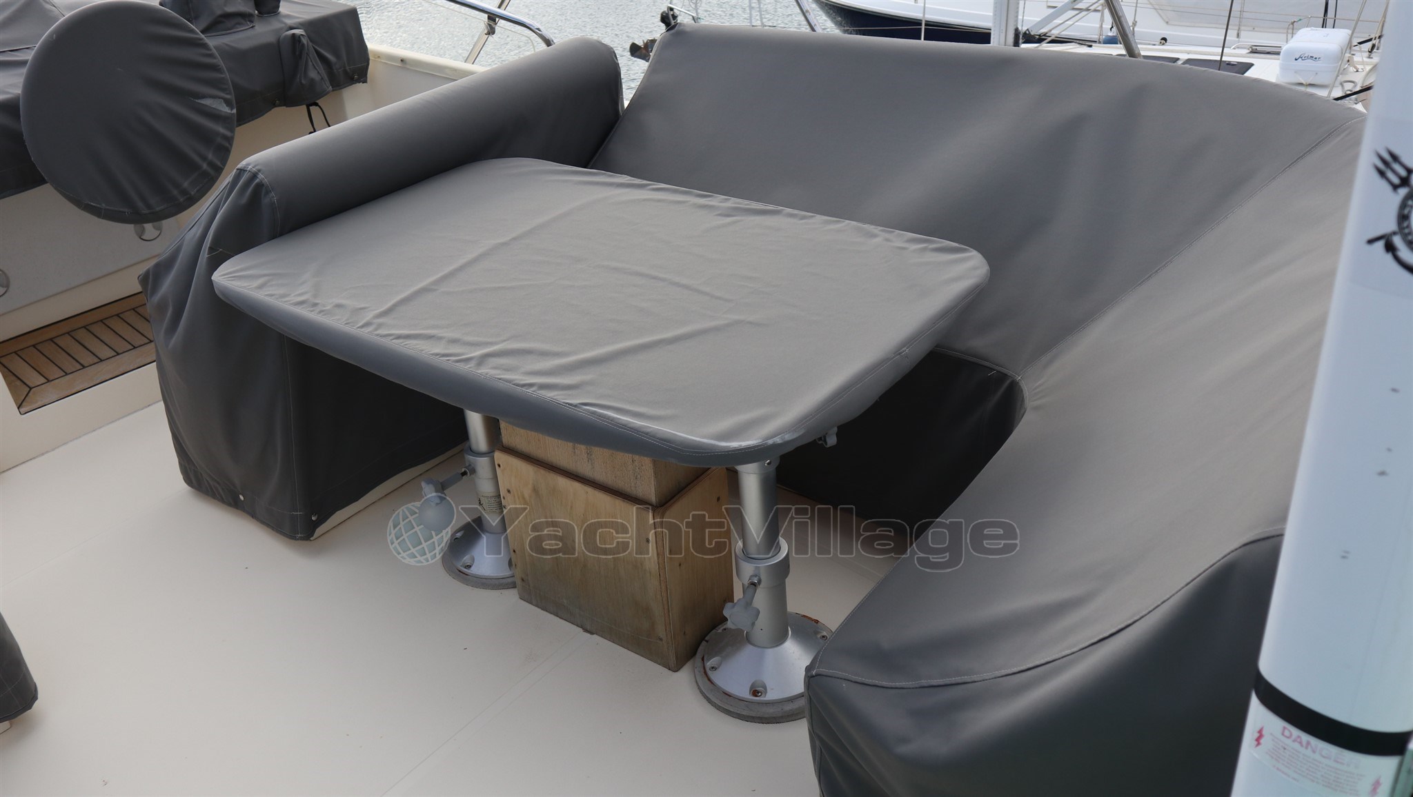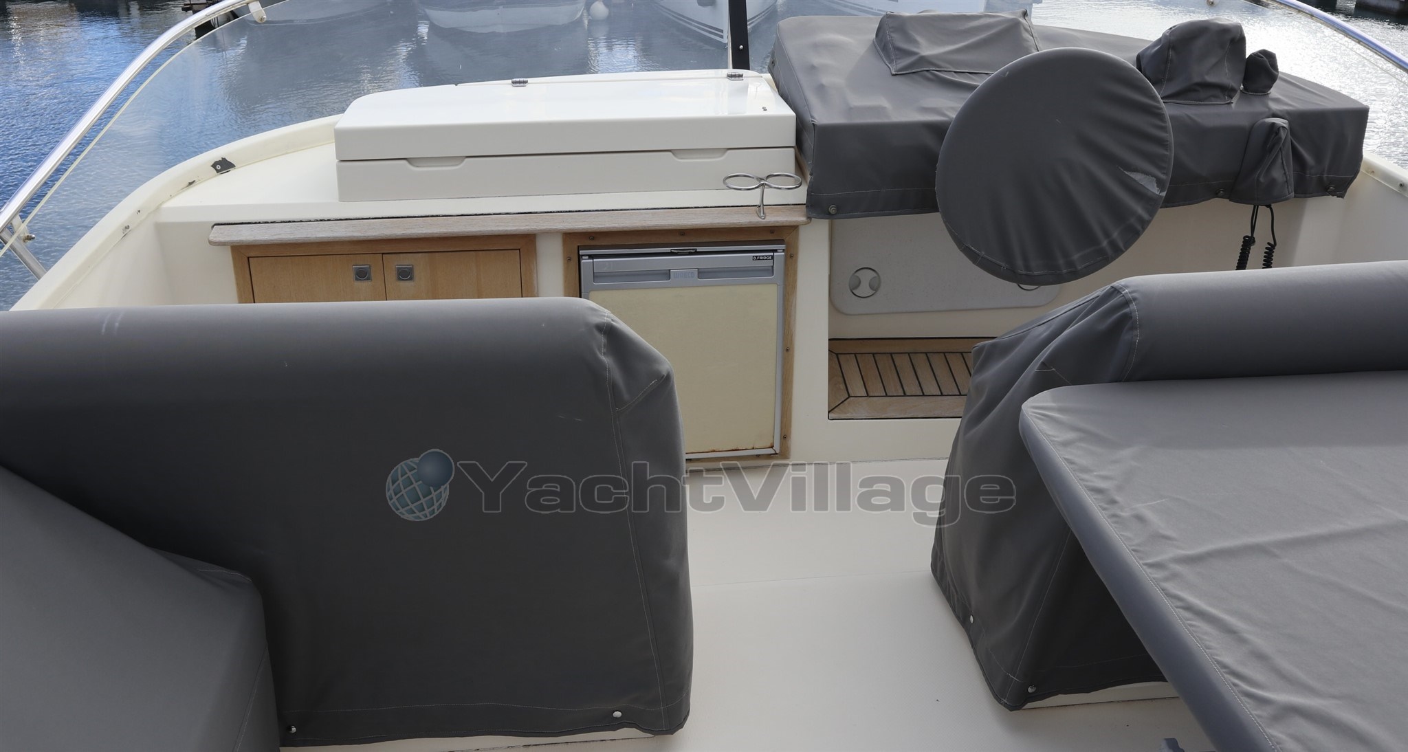 La vita all'aperto è eccezionale, con set di bimini e cuscini completi sul flybridge, nella cabina di pilotaggio e sul ponte di prua, mentre caratteristiche pratiche come le porte scorrevoli laterali e la finestra apribile dal salone all'abitacolo migliorano il flusso d'aria e l'accesso.