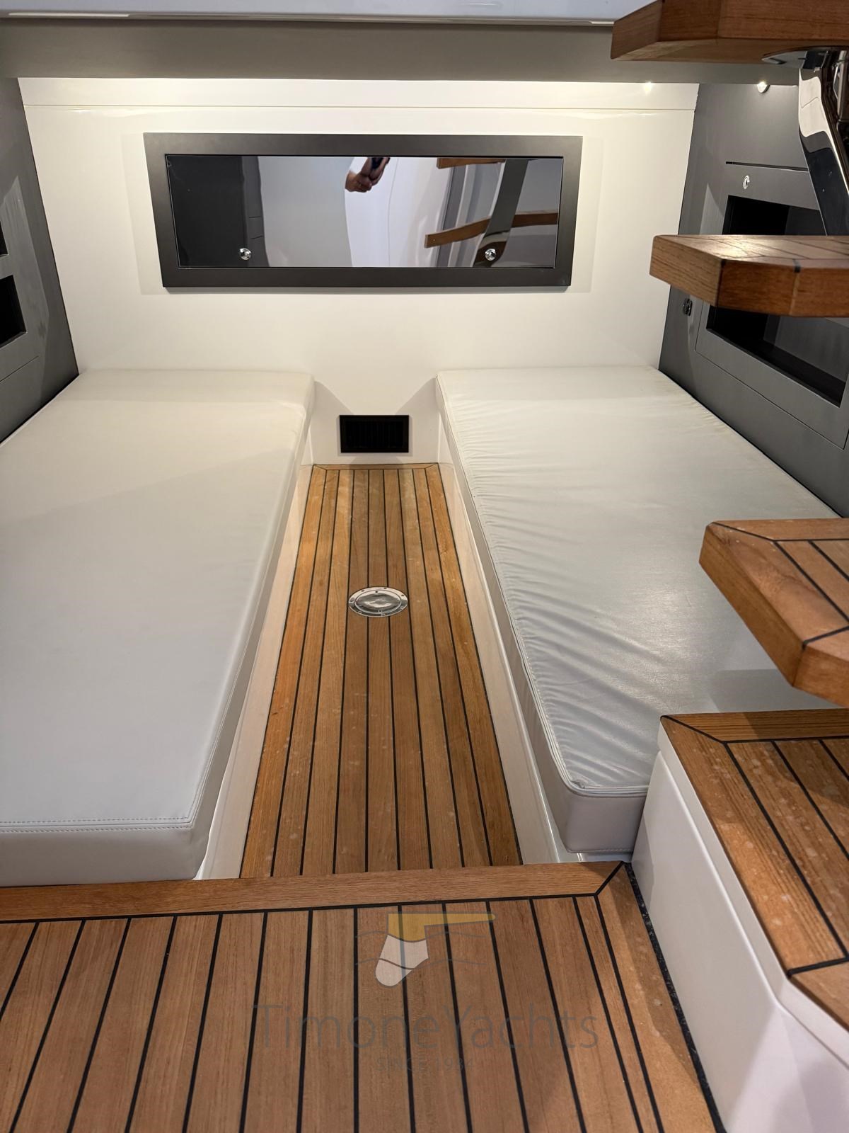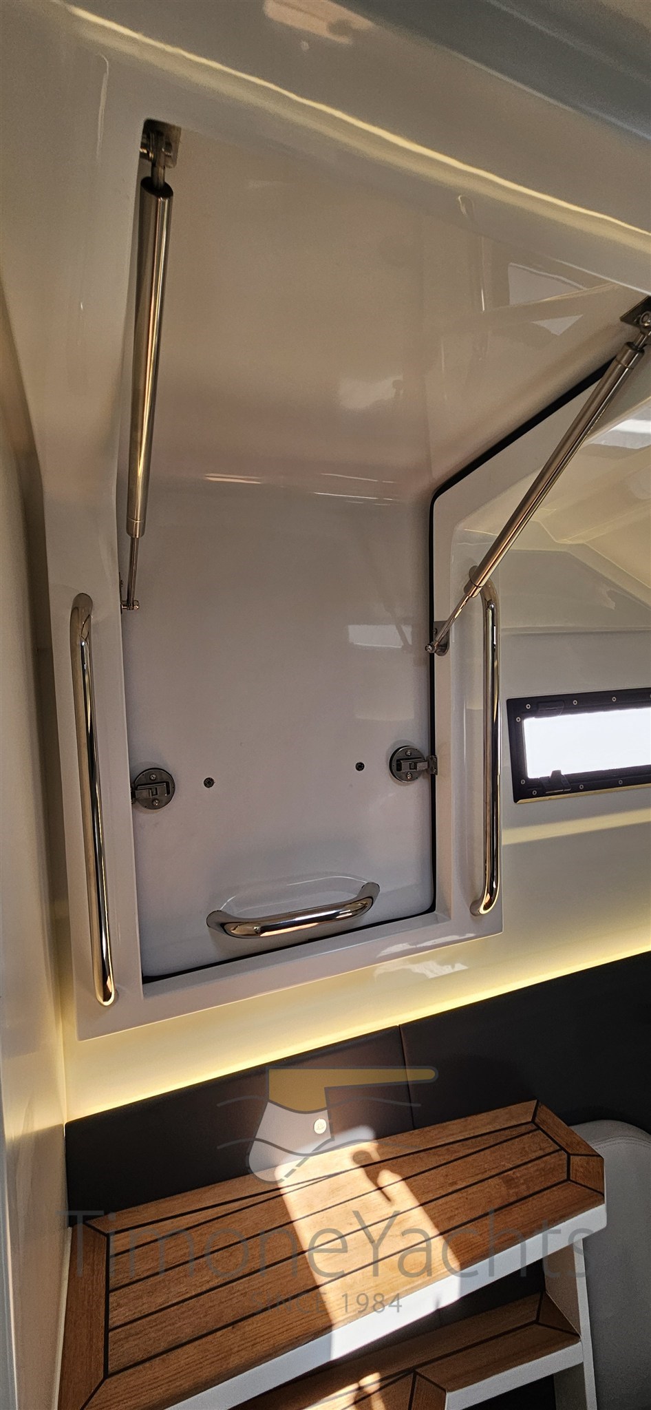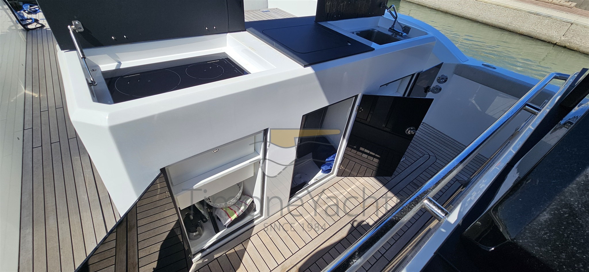 L’ampio prendisole di poppa offre comfort e sicurezza per chi desidera vivere il mare a pieno. Il pozzetto, personalizzabile secondo le esigenze dell’armatore, è ideale per accogliere numerosi ospiti con la massima comodità. Ogni dettaglio è studiato per massimizzare il comfort e la praticità a bordo.