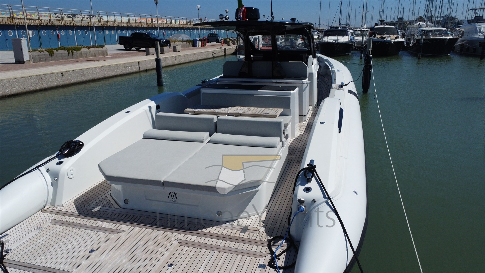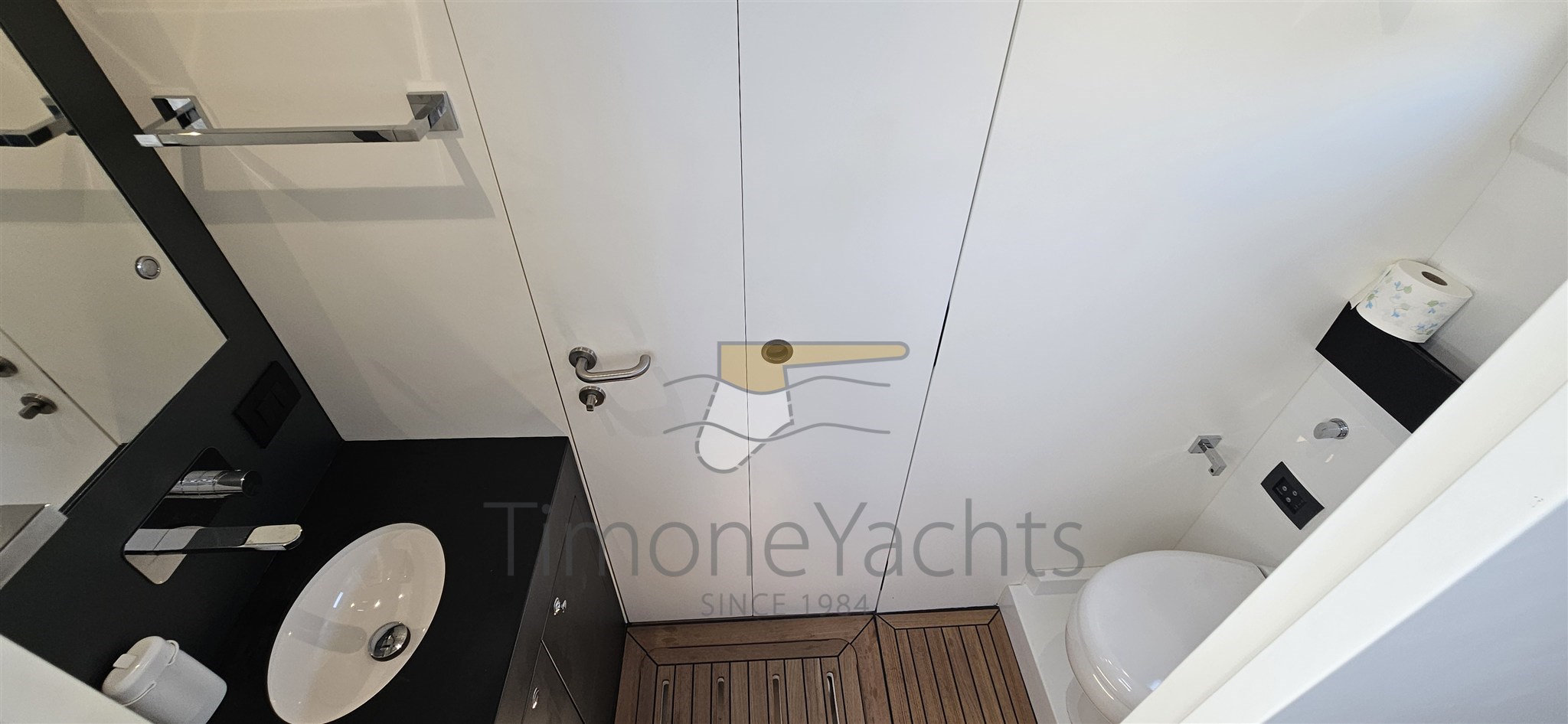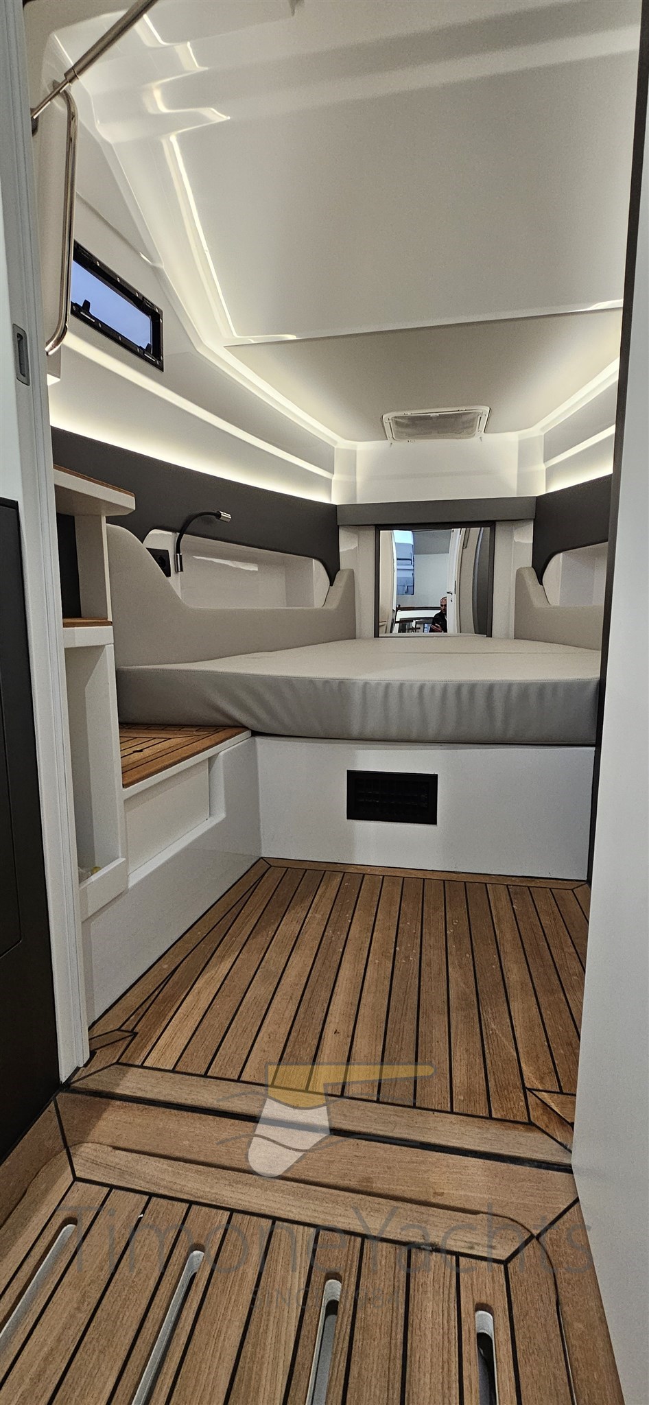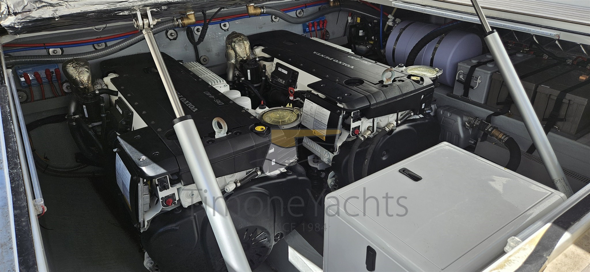 L’ampio prendisole di poppa offre comfort e sicurezza per chi desidera vivere il mare a pieno. Il pozzetto, personalizzabile secondo le esigenze dell’armatore, è ideale per accogliere numerosi ospiti con la massima comodità. Ogni dettaglio è studiato per massimizzare il comfort e la praticità a bordo.