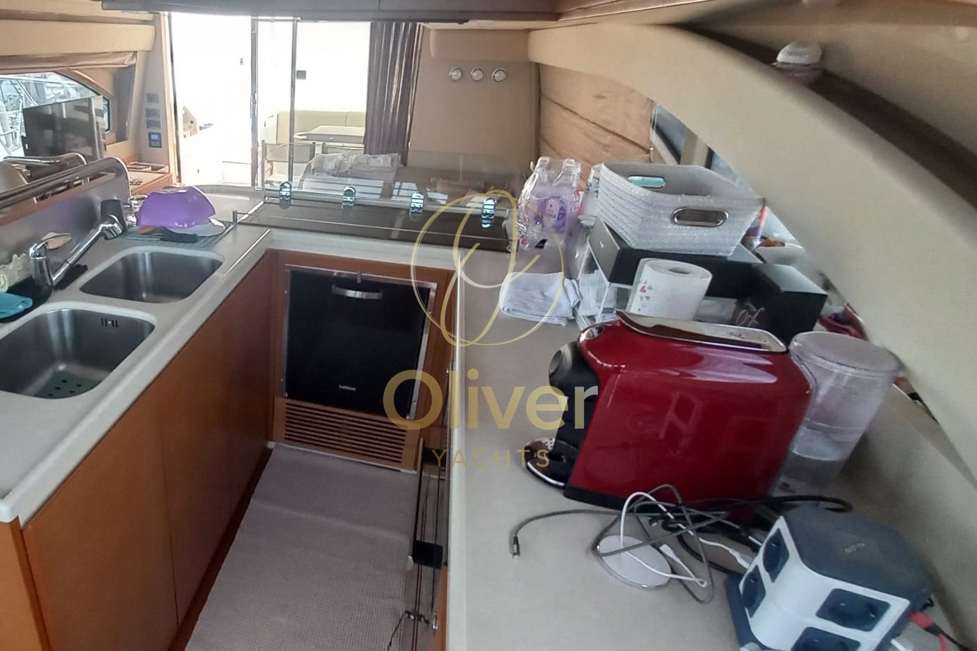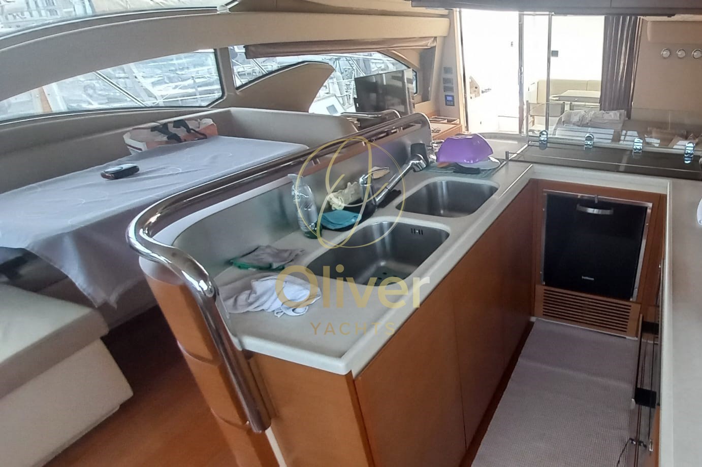 La zona giorno è organizzata con una doppia dinette, ideale per accogliere ospiti in momenti distinti della giornata, e una cucina a U completamente attrezzata, che unisce funzionalità e design. Tutto è studiato per offrire il massimo comfort, anche durante lunghe crociere.