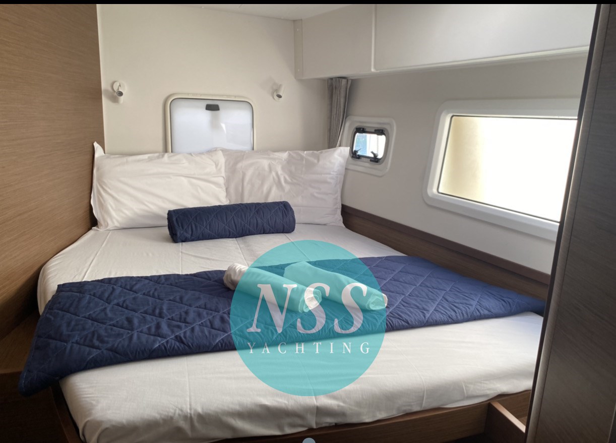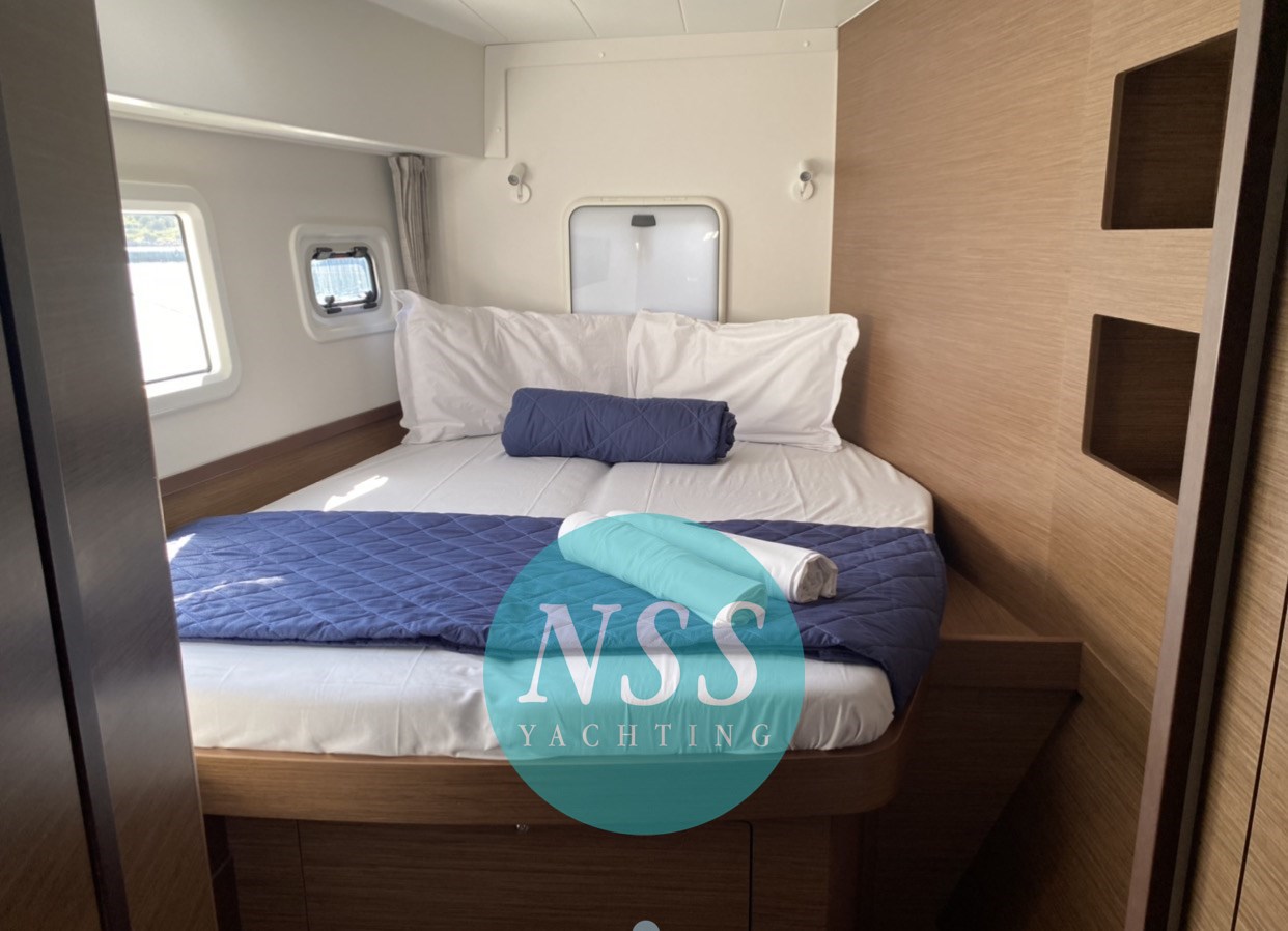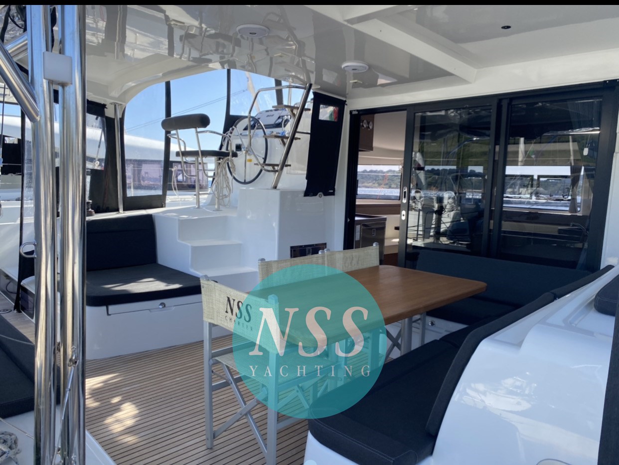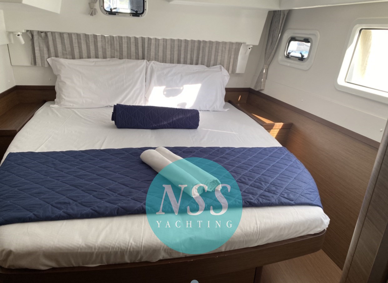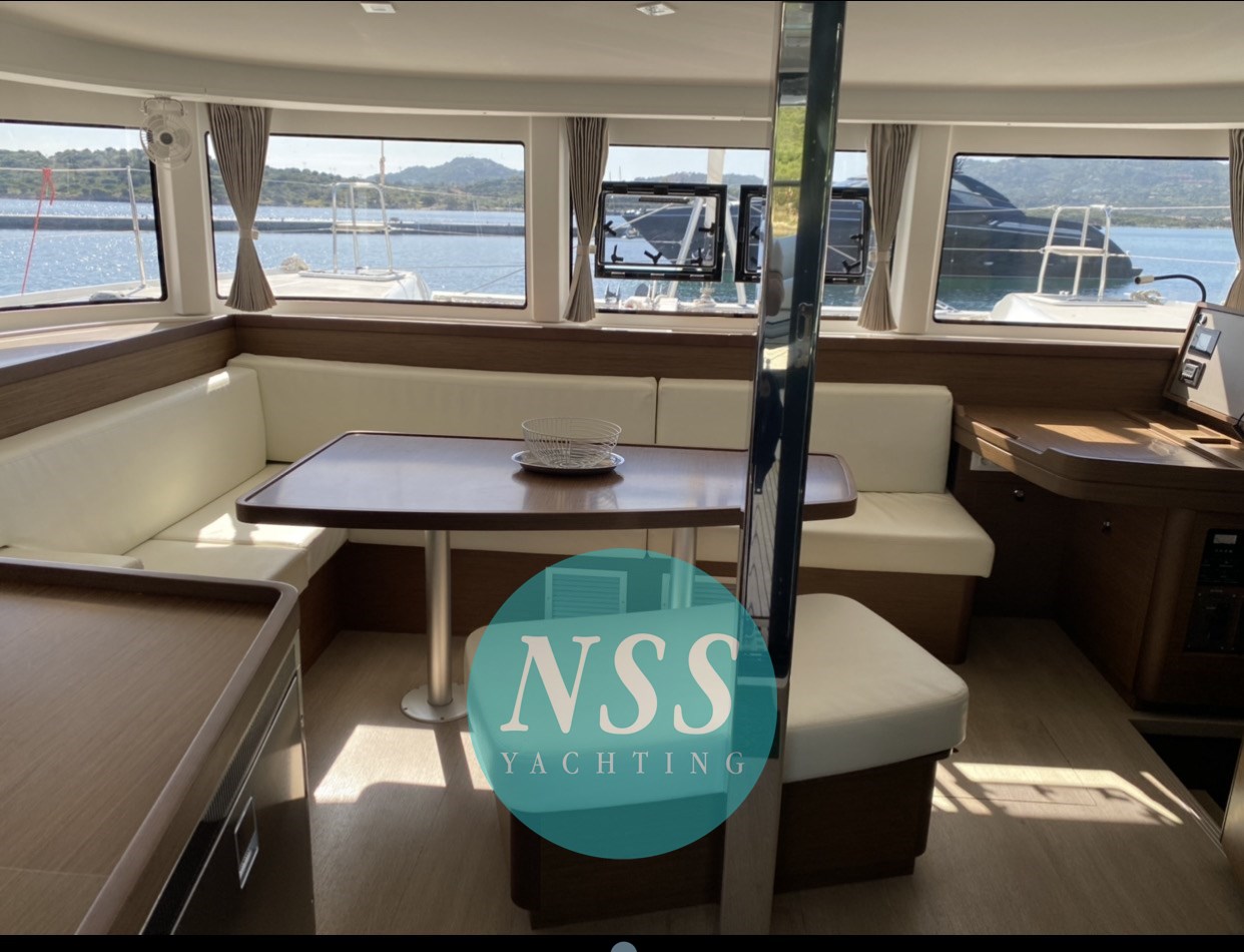 Nostra esclusiva; unico proprietario, ottime condizioni e full optional: MOTORI MAGGIORATI da 57 hp, GENERATORE, ARIA CONDIZIONATA 48000 BTU 220V, DISSALATORE, INVERTER, AIS, radar, bagni elettrici, due winch elettrici, randa 2022, chiusura totale timoneria e pozzetto, teak in pozzetto, serbatoio carburante supplementare, bimini in composito, tavolo supplementare invece dello standard Lagoon, pompa lavaggio coperta acqua dolce e di mare, tappezzeria pvc, dinette abbattibile, ventilatori, doghe sotto i letti... pronta alla boa! 4 cabine, 4 bagni + 2 cabine esterne per equipaggio. Visibile in Sardegna.