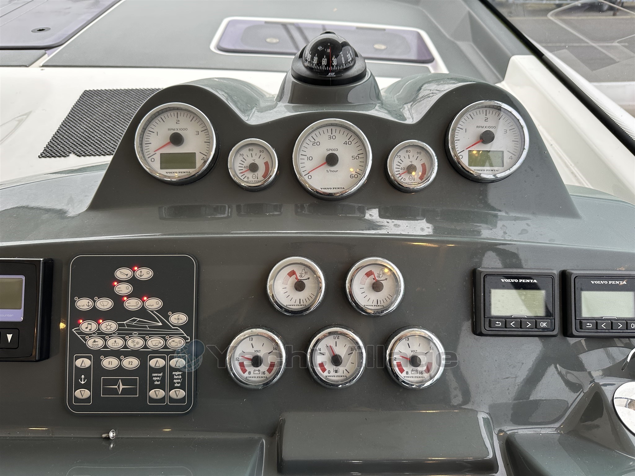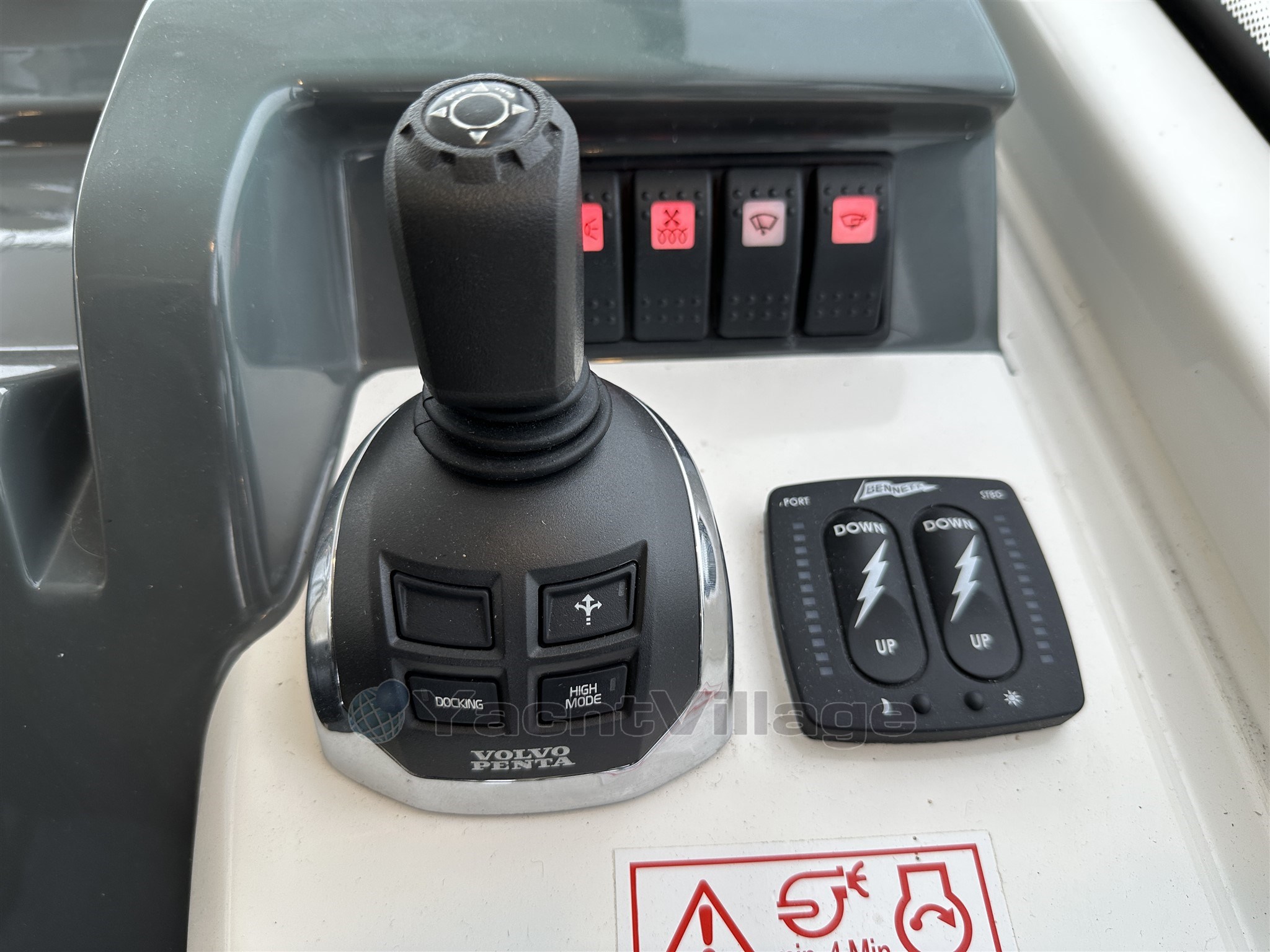 Macchine e sistemi Motori: Twin Volvo Penta D4-300 Diesel (circa 187 ore) Azionamenti: Entrofuoribordo con comando a joystick Flap: Bennett elettrico Pistoni di sterzo: Sostituito 2023 Elica di prua: Montato Generatore: Fischer Panda P4000s (2022,