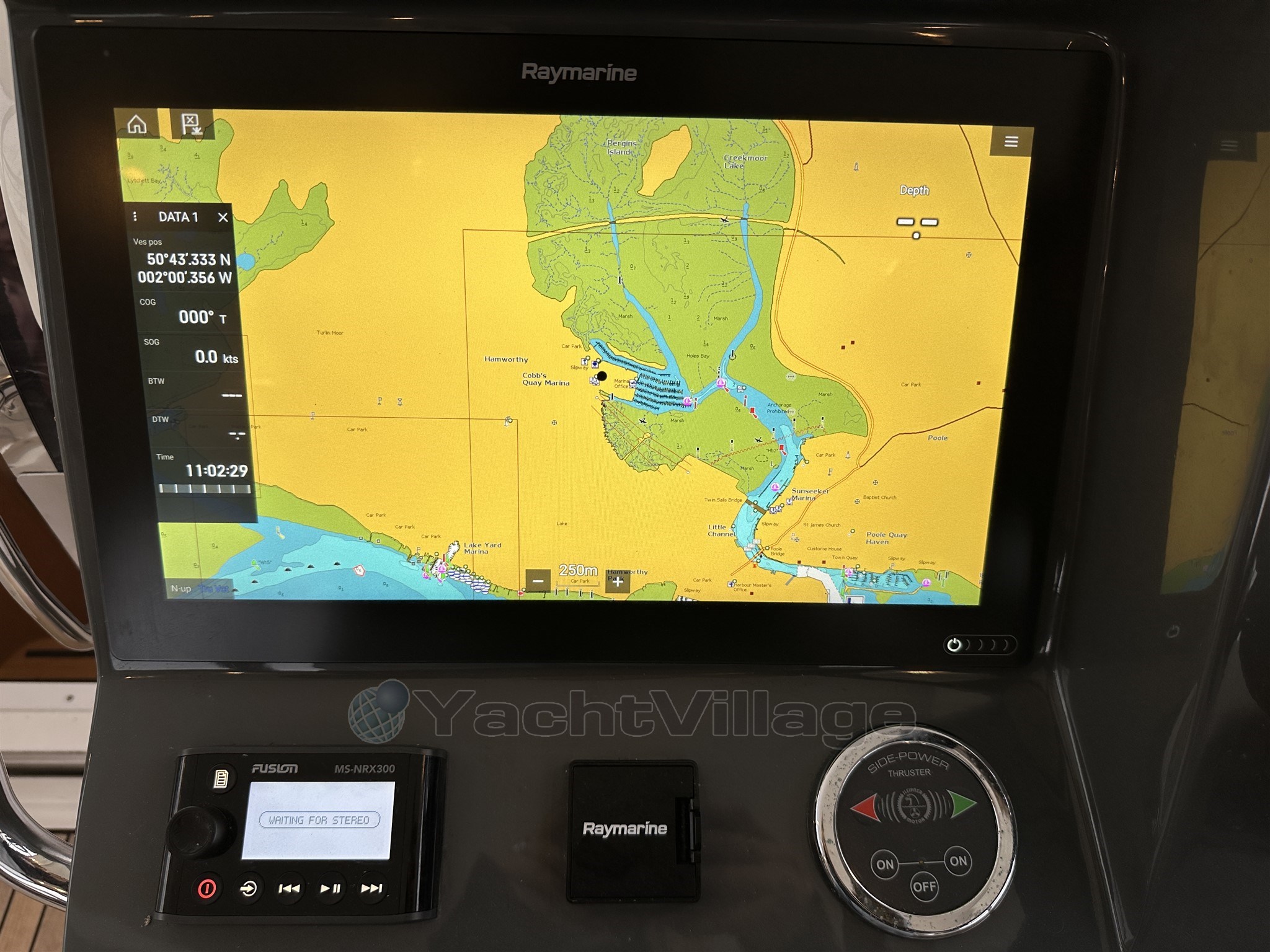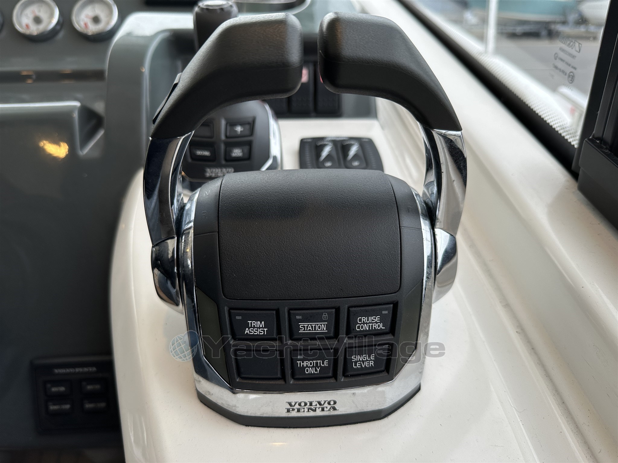 Presentata in ottime condizioni, è completamente preparata per la stagione. I punti salienti includono il comando a joystick, il riscaldamento diesel, il generatore, il tetto scorrevole elettrico, i ponti in teak e il sistema di lancio del gommone Hurley Marine H2O sulla piattaforma estesa.