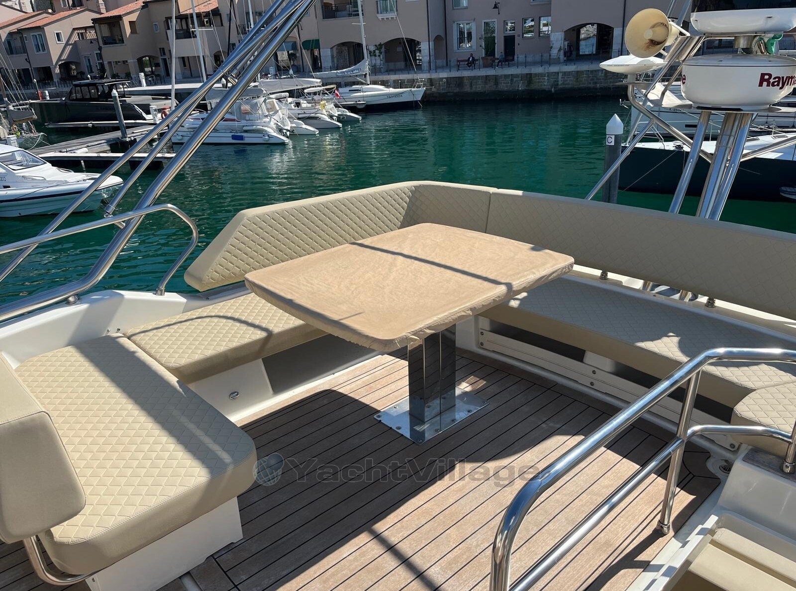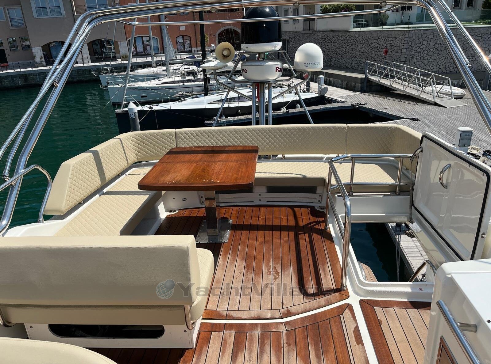 salone, cabina ospiti, cabina marittima, cabina a prua, ponte di comando, seconda posizione di sterzo in pancia mobile, fornella con filtro ceramico, frigorifero, lavandino, microonde con griglia, bagno elettrico + lavabo + doccia, profondità con figlia, registro con figlia, GPS con figlia, plotter cartografico, bussola con figlia, radio VHF, radar, bimini-top, copertura della cabina di pilotaggio, alimentazione a terra 220 volt, generatore diesel, caricabatteria, riflettore, ancora, arco di prua, lancio el., batteria, interruttore principale batteria, piattaforma da bagno, porta di poppa verso la piattaforma da bagno, portello ponte, sistema acqua calda, doccia di poppa calda/fredda, propulsore di prua, copertura solare, TV a colori, passaggio, corridoio elettrico, supporto attrezzature, impianto di trattamento dell'acqua di mare, squadre di rifinitura elevate/idre, riscaldamento aria condizionata, wetbar, tavolo in cabina di pilotaggio, verniciatura subacquea, altri extra, radio, antenna TV, pompa di sentina elettrica, sistema di acqua pressurizzata,