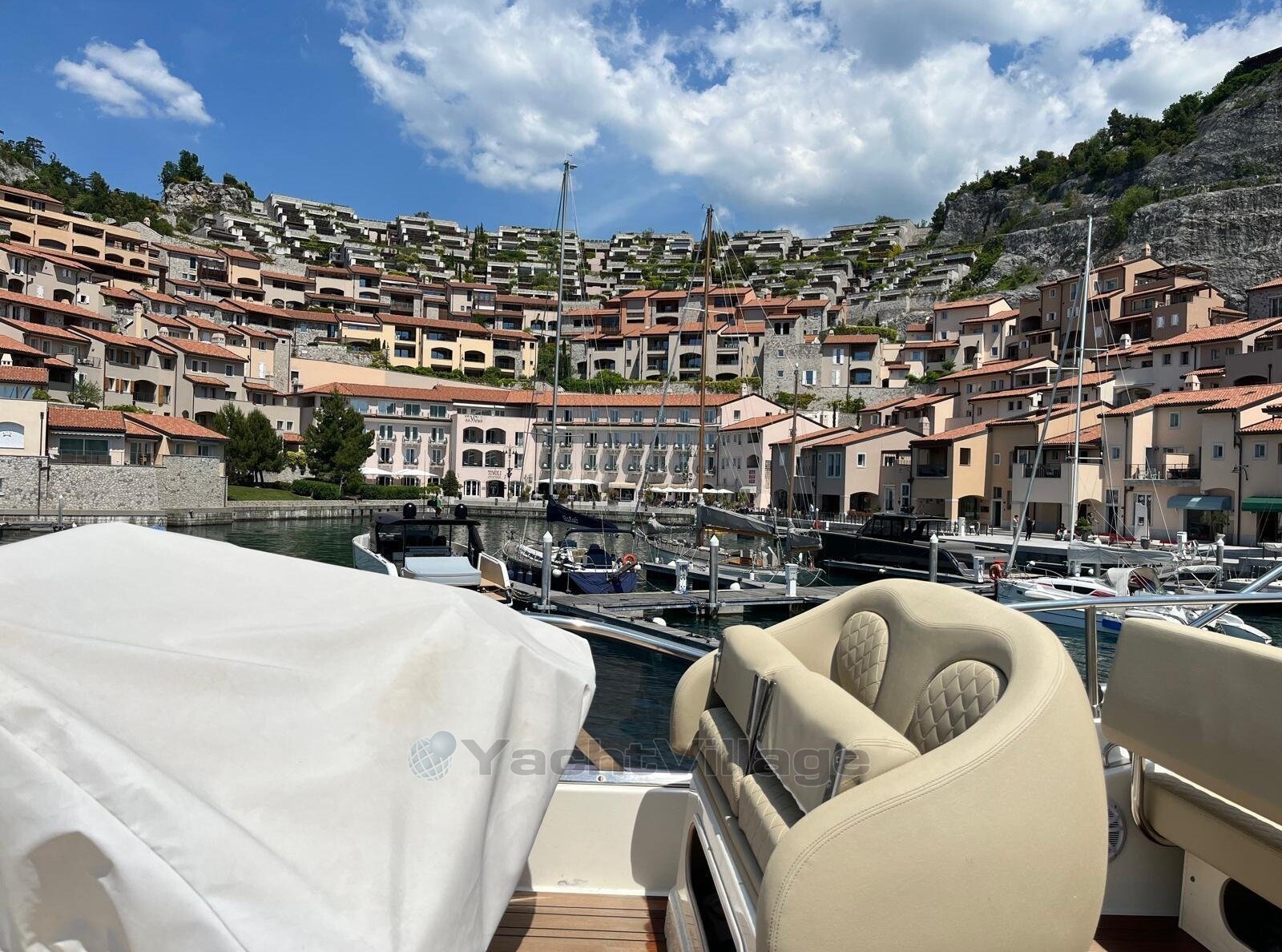 La barca è in ottime condizioni, ha anche teak on the fly e wet bar on the fly, barbecue elettrico e frigorifero, anche luci subacquee.